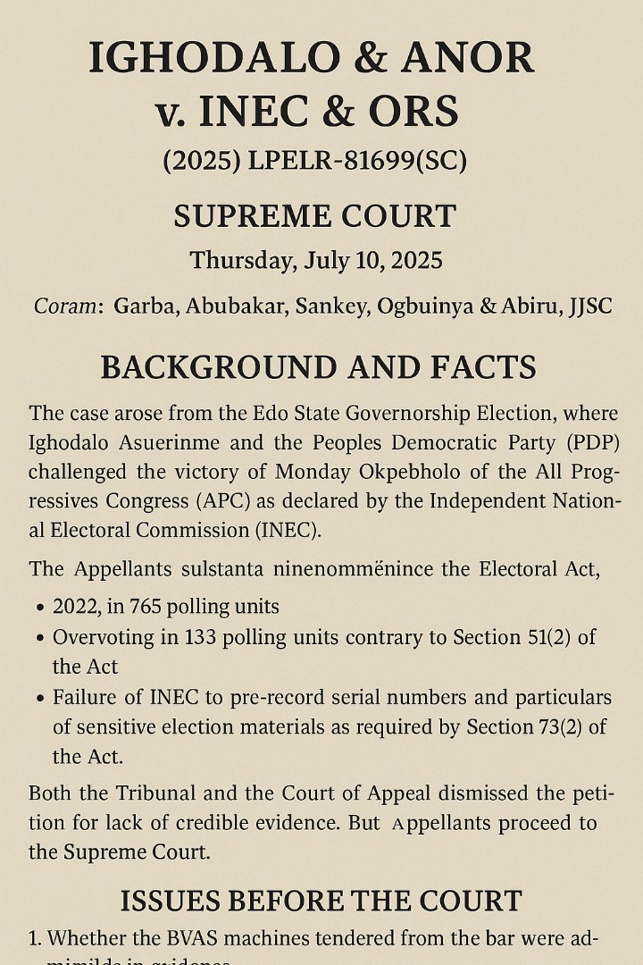 Ighodalo& Anor v. INEC & Ors (2025) LPELR-81699(SC), delivered July 10, 2025.